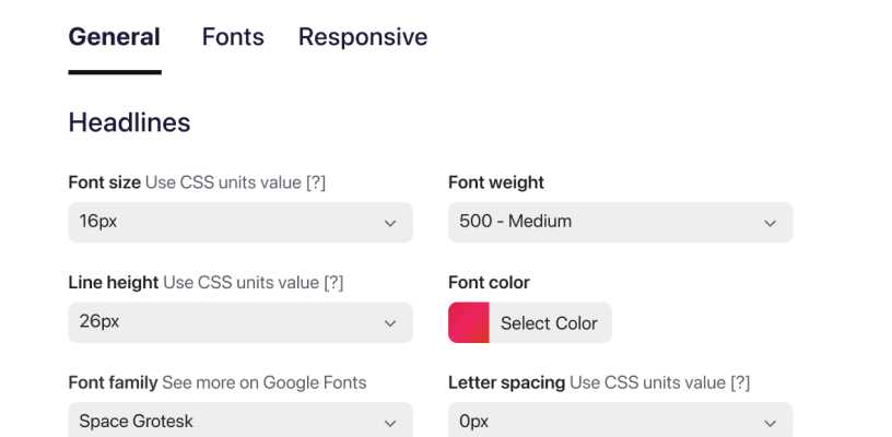 Choose from 1K+ Google Fonts, 12K+ Adobe Fonts and unlimited number of own hosted available fonts.